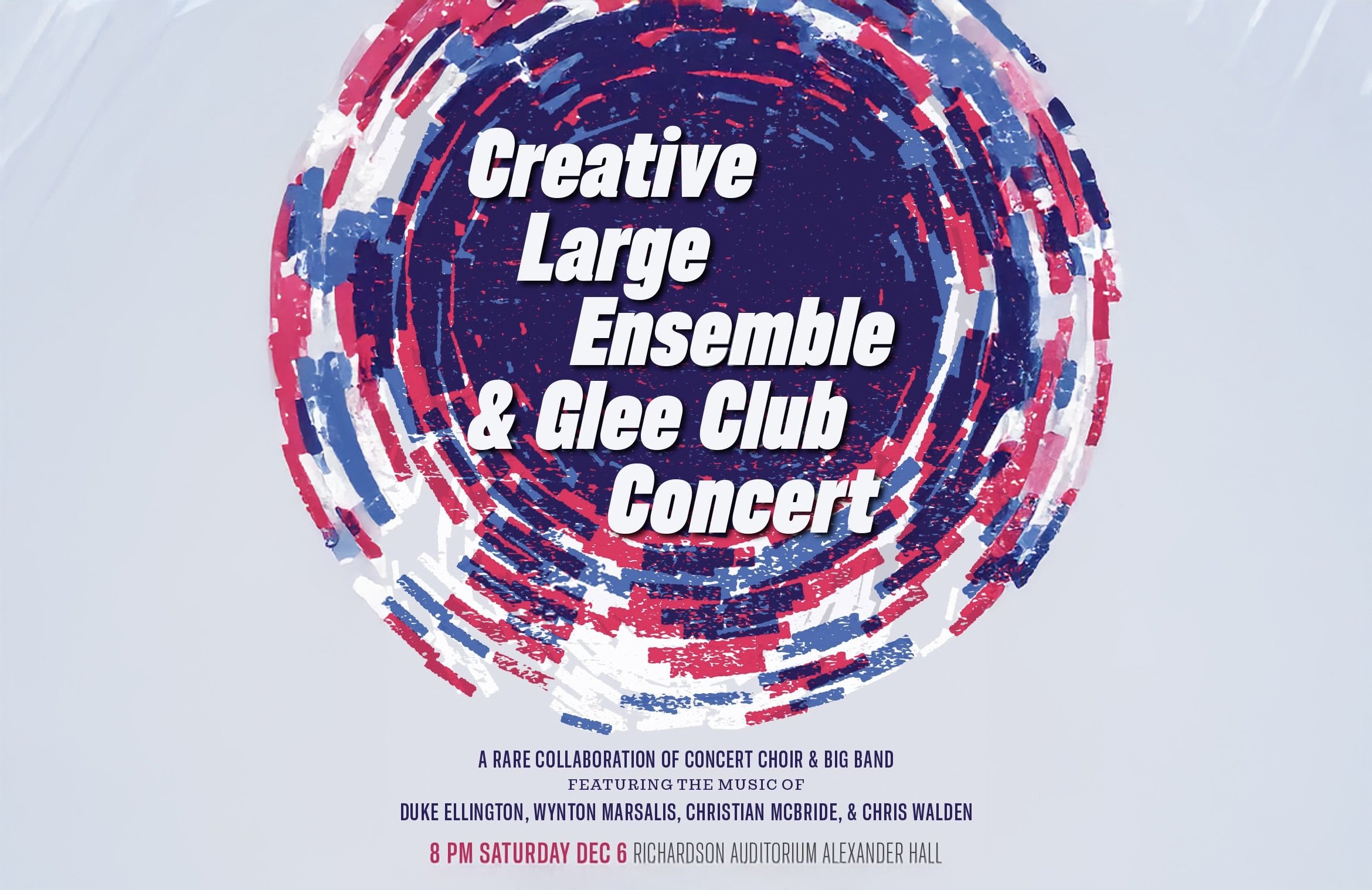 On December 6th, join us in Richardson Auditorium at 3pm with the Creative Large Ensemble. Come join us for an extraordinary meeting of concert choir and big band, showcasing music by Duke Ellington, Wynton Marsalis, Christian McBride, and Chris Walden!