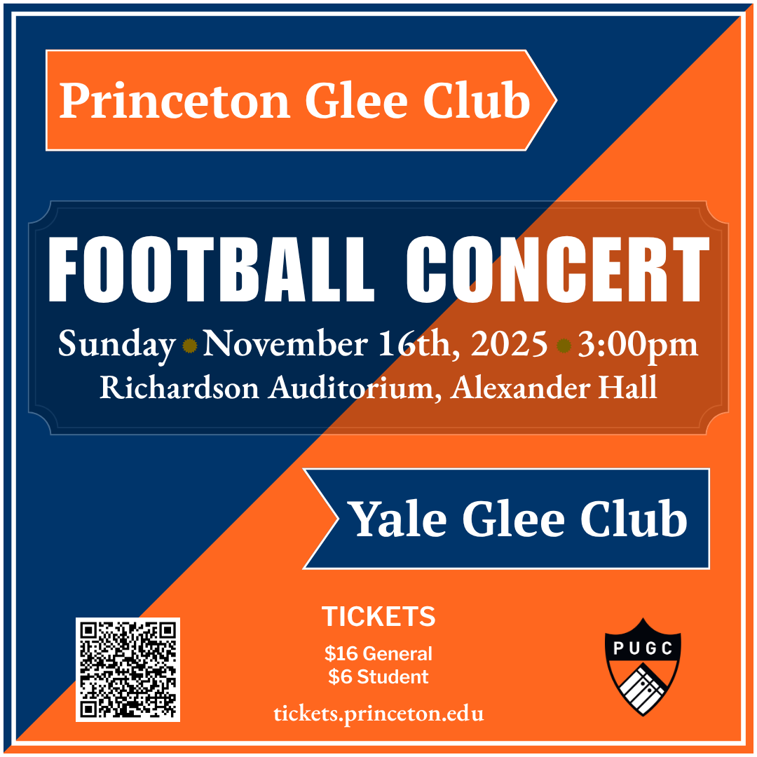On November 16th, our annual Football Concert will be presented in Richardson Auditorium at 3pm with the Yale Glee Club. Come support the PU Glee Club and Chamber Choir, visit with your fellow Glee alumni, and join us in singing the Football Medley! Can’t wait to see you there!