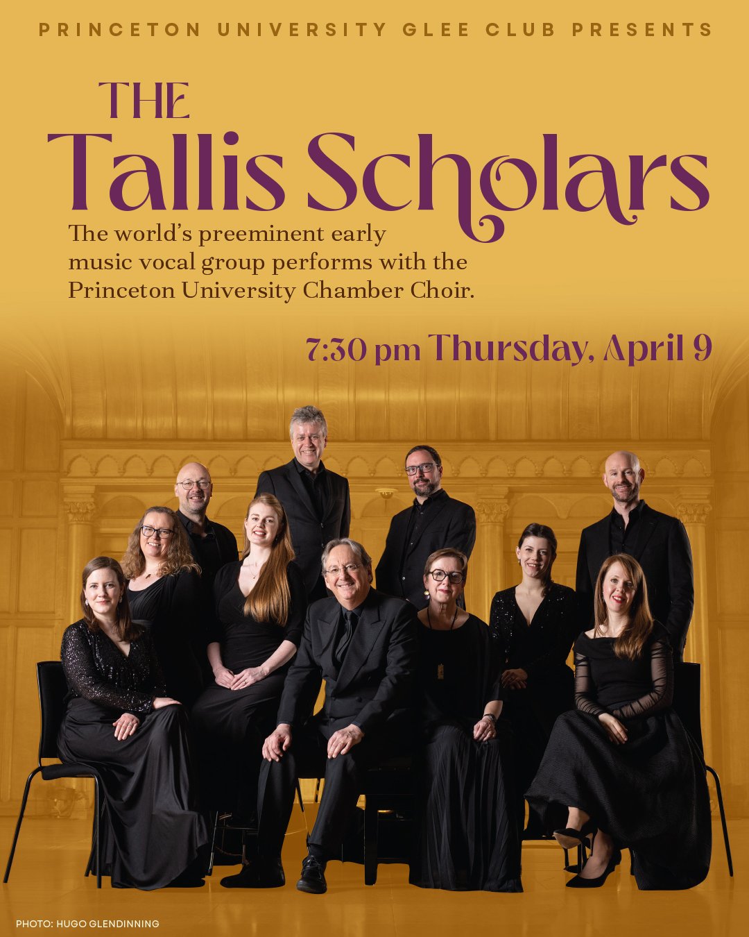 The Princeton University Chamber Choir joins the world-renowned early music vocal ensemble, The Tallis Scholars, for a concert of Renaissance polyphony and a world premiere by Matthew Martin. Other repertoire includes works by Gabrieli, Wert, Victoria, Tallis, and Pärt. In this rare visit to Princeton, the Tallis Scholars are not to be missed!